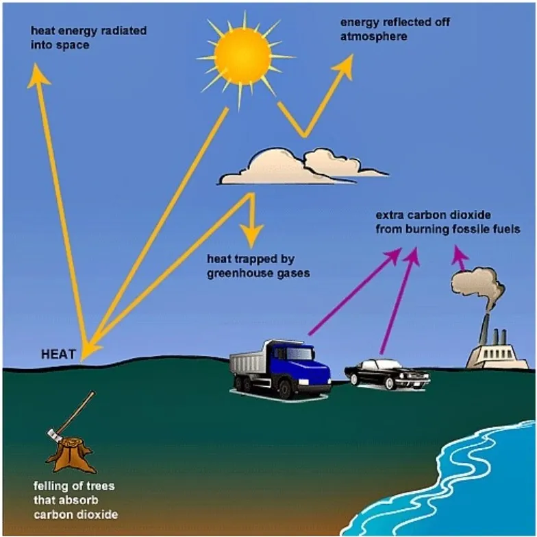 Due to urbanization on pollution forms a cloud containing toxic gases such as carbon monoxide. These clouds resist the reflection of the heat to the space; hence, those gases are known as greenhouse gases. Moreover, the sun proposes heat on the clouds, and clouds reflect the heat energy to the atmosphere.