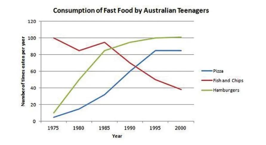 The Line Graph Below Shows Changes in The Amount and Type of Fast Food Consumed by Australian Teenagers from 1975 to 2000.