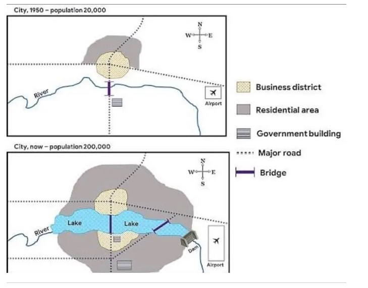 The Map of a City in 1950 and now. Academic Writing Task 1