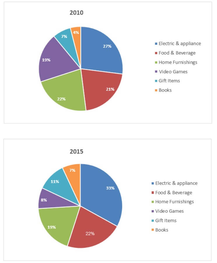 The Pie Charts Below Show the Online Shopping Sales for Retail Sectors in Australia in 2010 and 2015. Summarise the Information by Selecting and Reporting the Main Features and Making Comparisons Where Relevant.